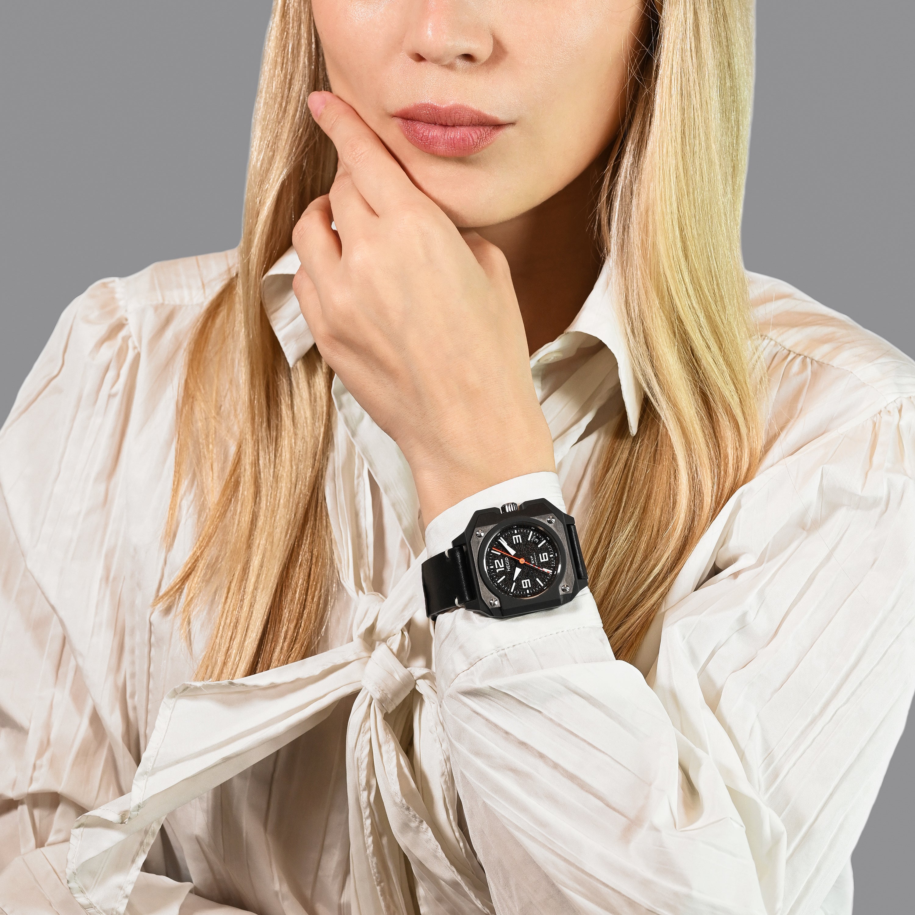 Hegid's Celeste is a mysterious, geometric, and uncompromising watch, housing a radial time indicator. Its elevated fuselage reveals an observation instrument through a massive, faceted, robust octagon.
