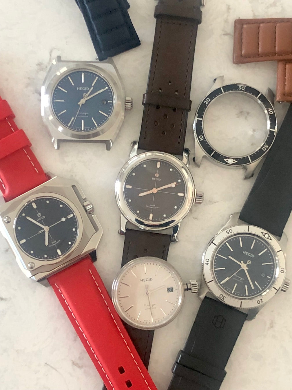"Hegid, whose watches use a patented modular design based around swappable case shapes, describes its approach as dressmaking for watches".